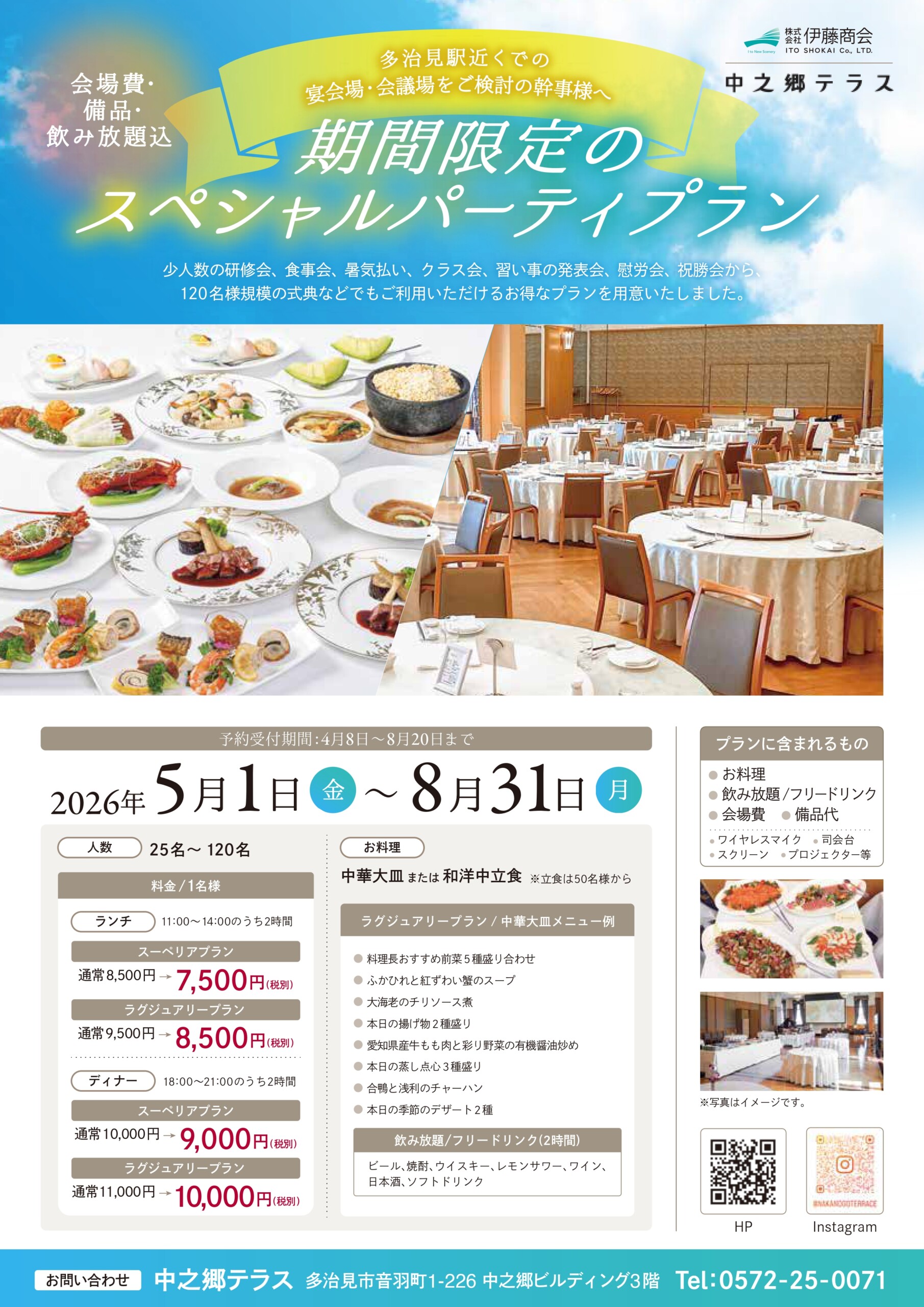 期間限定(5/1~8/31)のスペシャルパーティプランのご案内